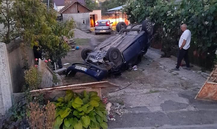 Accident cu victime la Plosca, după ce o mașină s-a răsturnat într-o curte