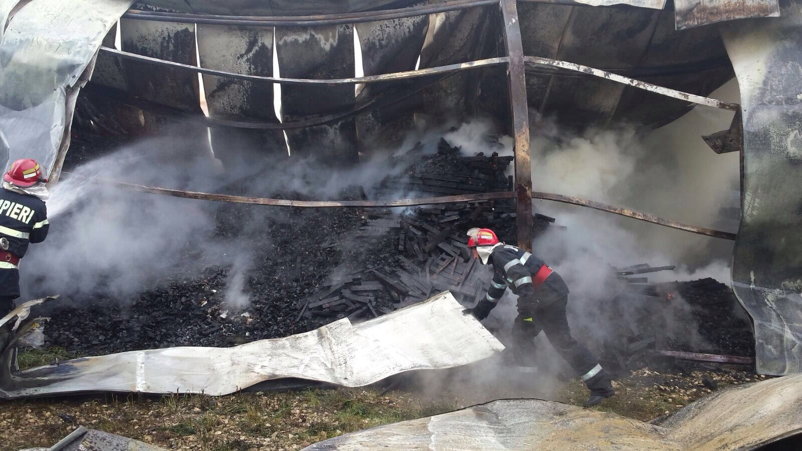 La momentul sosirii echipajelor de pompieri incendiul se manifesta pe aproximativ 500 mp iar in interior se afla un motostivuitor alimentat cu gaz de la o butelie, cu pericol de explozie.