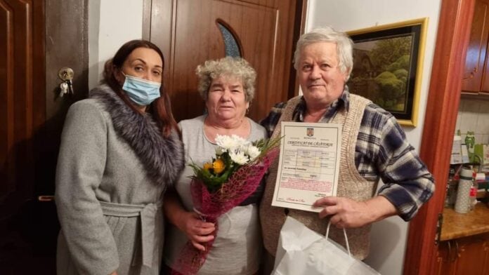 Fiecare cuplu de aur a primit din partea municipalității o diplomă de fidelitate, 600 de lei, produse igienico-sanitare (măști și dezinfectant) dar și produse donate de un celebru lanț de farmacii.